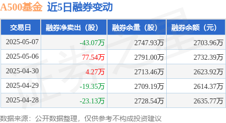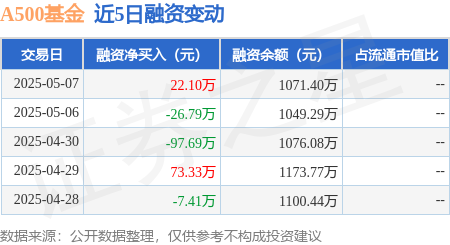 - A500基金:5月7日融资买入204.27万元,融资融券余额